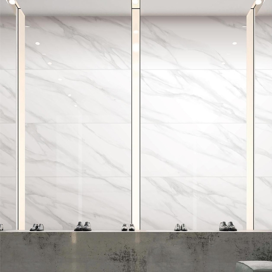 This marble effect ceramic evokes purity and well-being. With its light tones, it will bring brightness and splendor to your room. It is a favorite choice of our customers.