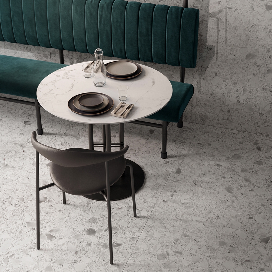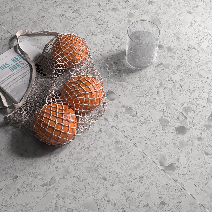 Pioltello stands out for its incredible terrazzo effect. Made in Italy, this colored body porcelain ceramic honors the traditional terrazzo, which is made from tinted cement mixed with elements such as granite, glass, or marble. Unique in its kind, its design creates the illusion of a cluster of water droplets gathered, resulting in an exceptional visual. Available in four colors, Pioltello Naturel offers a variety of choices to suit all styles and settings.