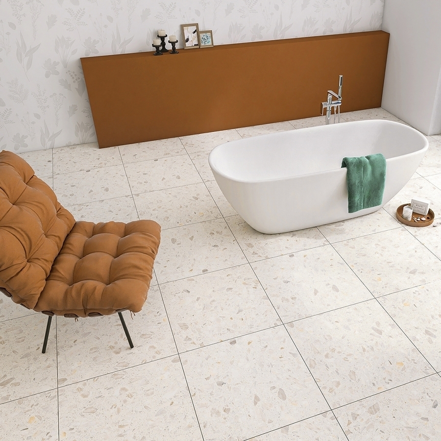 The Casella terrazzo-effect series is a trendy option, perfect for adding a touch of modernity, originality, and elegance to any space. It is an R9 matte-finish ceramic tile, suitable for both indoor and outdoor use, while ensuring an easy-to-maintain surface.