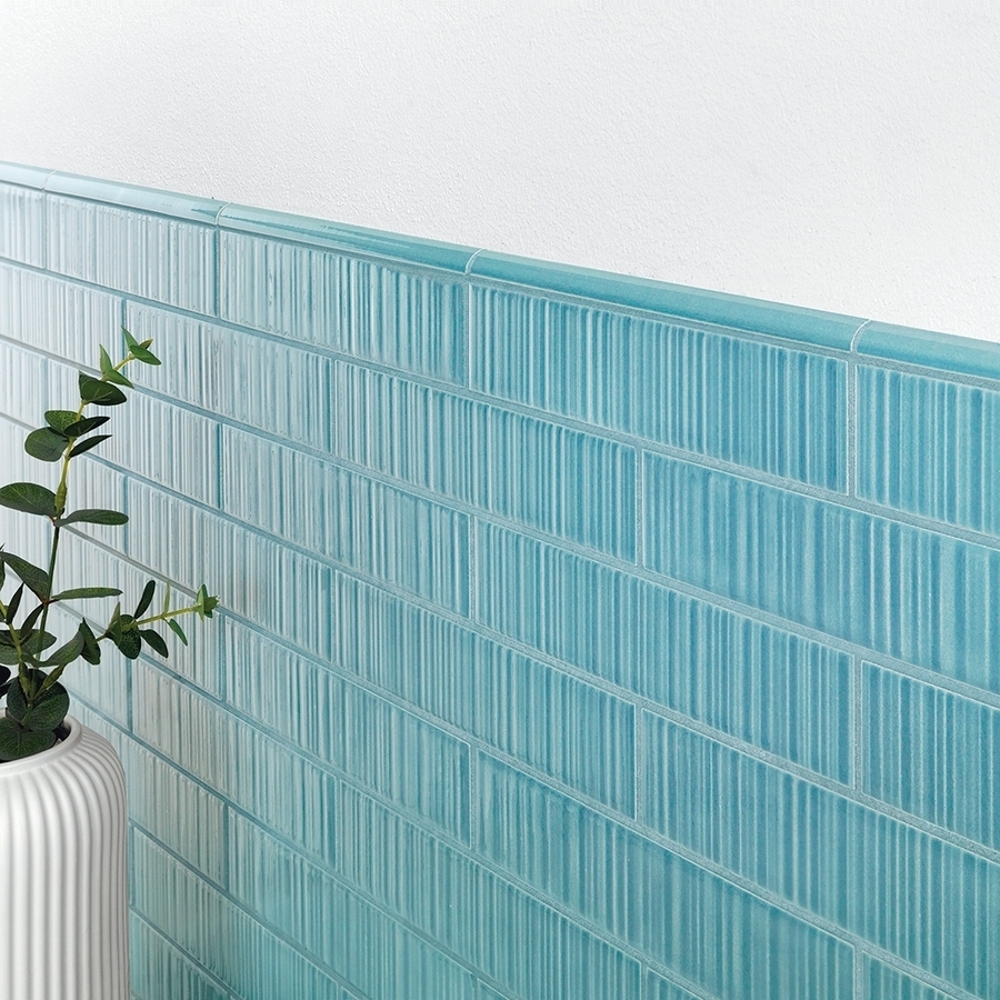 This rectangular tile, sourced from Italy, is perfect for enhancing your walls. Its glossy finish provides a subtle shine, while its textured, striped surface adds character and sophistication. Available in six Mediterranean-inspired colors, ranging from deep blues to soft beiges, it evokes the beauty and warmth of the region. This tile combines modern design with great functionality, bringing elegance and durability to all your wall decoration projects.