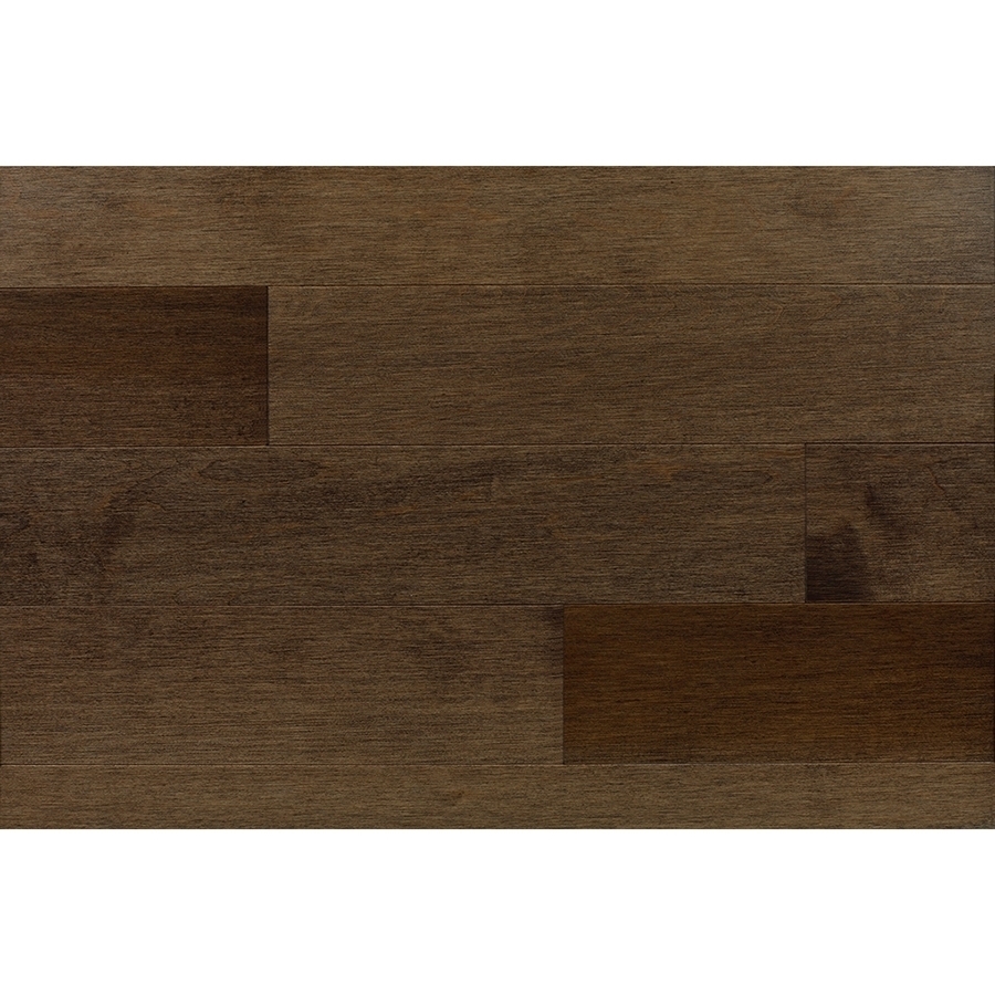 Ce plancher de bois franc en érable brun foncé donne une allure chic et contemporaine à votre intérieur. Sa teinte riche et profonde met en valeur la texture naturelle du bois, tandis que le fini satiné en uréthane assure une protection durable contre l’usure quotidienne.